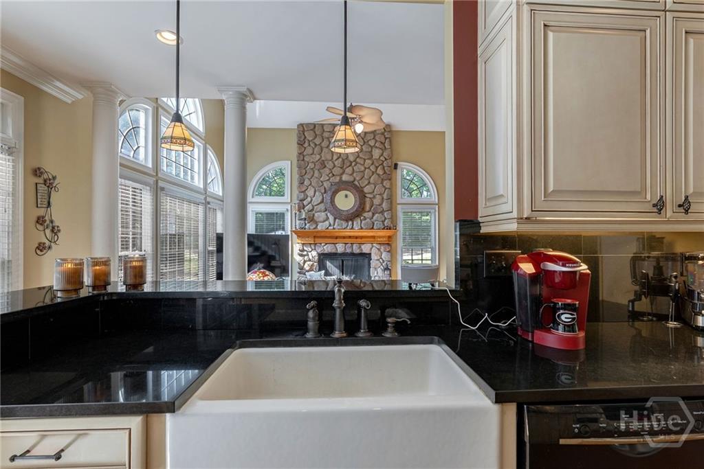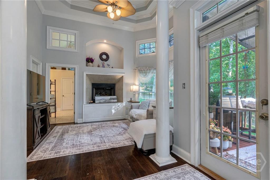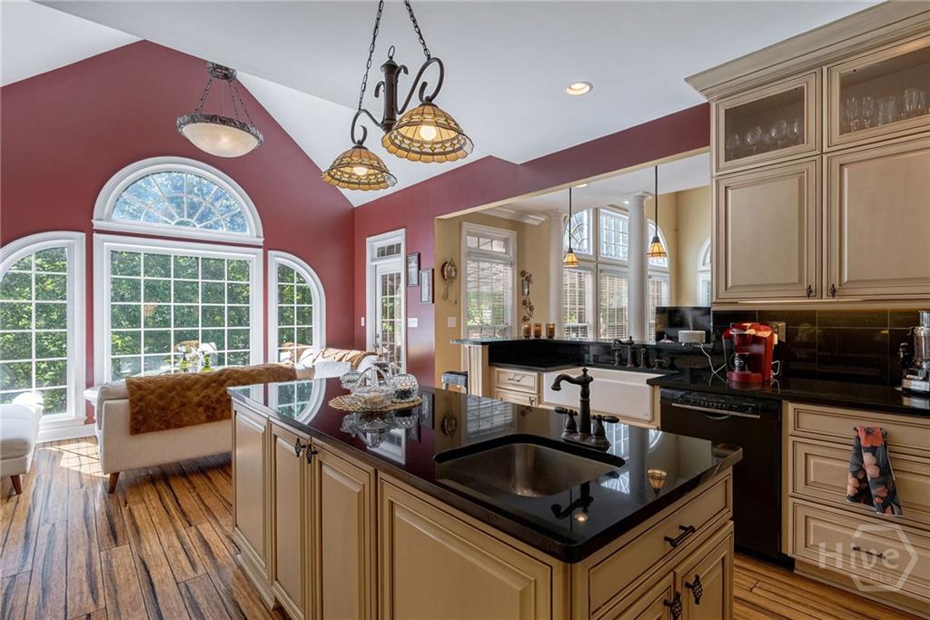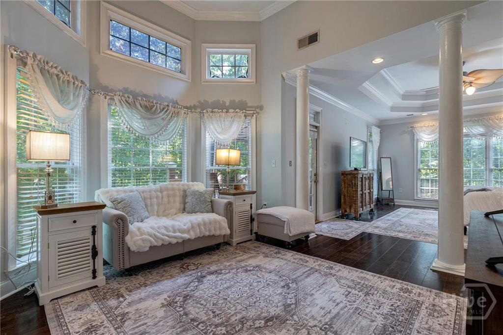 WELCOME TO A RARE GEM NESTLED IN THE HEART OF OCONEE COUNTY, LESS THAN 3 MILES FROM BUTLER’S CROSSING. COUNTRY QUIET WITH QUICK ACCESS TO PARKS, RESTAURANTS, AND SCHOOLS. THIS GORGEOUS, ONE OWNER, BEAUTY IS A UNIQUE, 2004 CUSTOM BUILD ON 4.96 ACRES WITH YEAR ROUND SCENIC VIEWS. The exterior invites you in with a stunning combination of masonry stucco and custom stone. Follow the flat stone walkway through a large, elegant Hansel and Gretel Front door with leaded glass. The grand, 2 story foyer boasts a curved staircase to a bridge overlooking the entry & formal living room. Both reflecting 18 ft. ceilings. This FRANK BETZ open floor plan includes: heavy trim work, elegant columns, & brilliant lighting, inside & out. The large dining room is open, sits 12+, and has a window that allows the morning sun to fill the main living areas. The gourmet kitchen includes: granite countertops with oversized island, cooktop, ceramic stove with warming drawer, pot filler, microwave-oven combo, & buffet setup for large family meals. Relax in the breakfast nook, which is the hub for family time & relaxation and enjoy numerous sunsets from the enormous picture window. A single French door leads you to a 12 x 20 covered deck constructed from composite decking complimented by decorated iron rails. Step into the luxurious Owner’s suite to find: 13 ft. cathedral ceilings, an elegant sitting room with huge window, lots of natural light, your own gas fireplace, views to the forest behind, and doors opening out onto another private, covered, 8 x 12 deck. The owner’s Bath consists of more grandeur, such as: Double sinks with Corian counter tops, a huge dressing room, another walk in closet, step in tiled shower, tiled floor, and a lavish, jetted tub with tile surround with a double faced gas fireplace. Two separate staircases lead you upstairs to 3 oversized bedroom en suites, all complete with tiled baths and walk in closets as well as another laundry/office room. Downstairs in the 2600+ finished sq. ft. terrace level, you will experience a grand living area that includes: family room with gas fireplace, full kitchen and eat in breakfast area with doors opening out to the embellished, covered patio. This terrace level showcases: many daylight windows, 2 full bedrooms and another’s owner’s suite with a regal bathroom with 2 separate vanities and huge walk in tiled shower. The terrace level also offers: a laundry room, and a finished garage space heated and cooled! This garage space (“the Doggy Hotel” as known by the seller) is an amazing place with media options and luxurious, living conditions for your favorite, furry, family members with immediate access to another garage door leading to the back yard. This amazing property also includes other bonus features: 4 newer replaced HVACS under warranty, 3 NEW 50 Gallon water heaters, 4 outdoor living spaces, 2 fire pit areas, and a separate workshop with electricity. Come and Live out YOUR OWN story book fantasy in this very private, majestic, and enchanting setting! | |