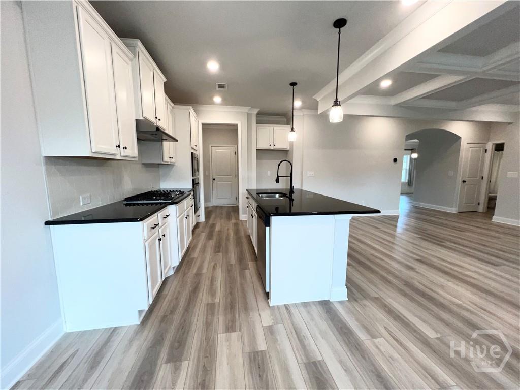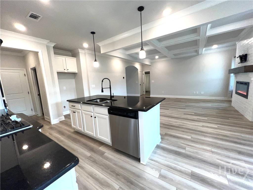 This BARELY LIVED IN home is truly MOVE-IN READY and packed with upgrades! Don’t miss your chance to own a home in the sought-after Mallards Landing subdivision that is PRICED BELOW MARKET value! Step inside to open-concept living with a formal dining room and a spacious family room featuring a stunning floor-to-ceiling whitewashed fireplace, beautiful coffered ceilings, and an abundance of natural light. The dream kitchen offers a large island, custom cabinetry, stainless steel appliances, a MASSIVE walk-in pantry, and a cozy breakfast area. A main-level bedroom with a full bath adds flexibility-perfect for guests or a home office. Upstairs, you’ll find a generous loft ideal for a playroom or second living space. The owner’s suite is a true retreat with a spacious bedroom and a gorgeous bath complete with double vanities, granite countertops, a HUGE tiled walk-in shower with dual shower heads, and an oversized walk-in closet. Secondary bedrooms are roomy and versatile-great for kids, guests, or extra storage. The COVERED back porch over looks the private backyard and offers a lovely space for grilling out and relaxing with friends! With a 3-car garage, stylish lighting and plumbing fixtures, and plenty of space throughout, this home has it all.